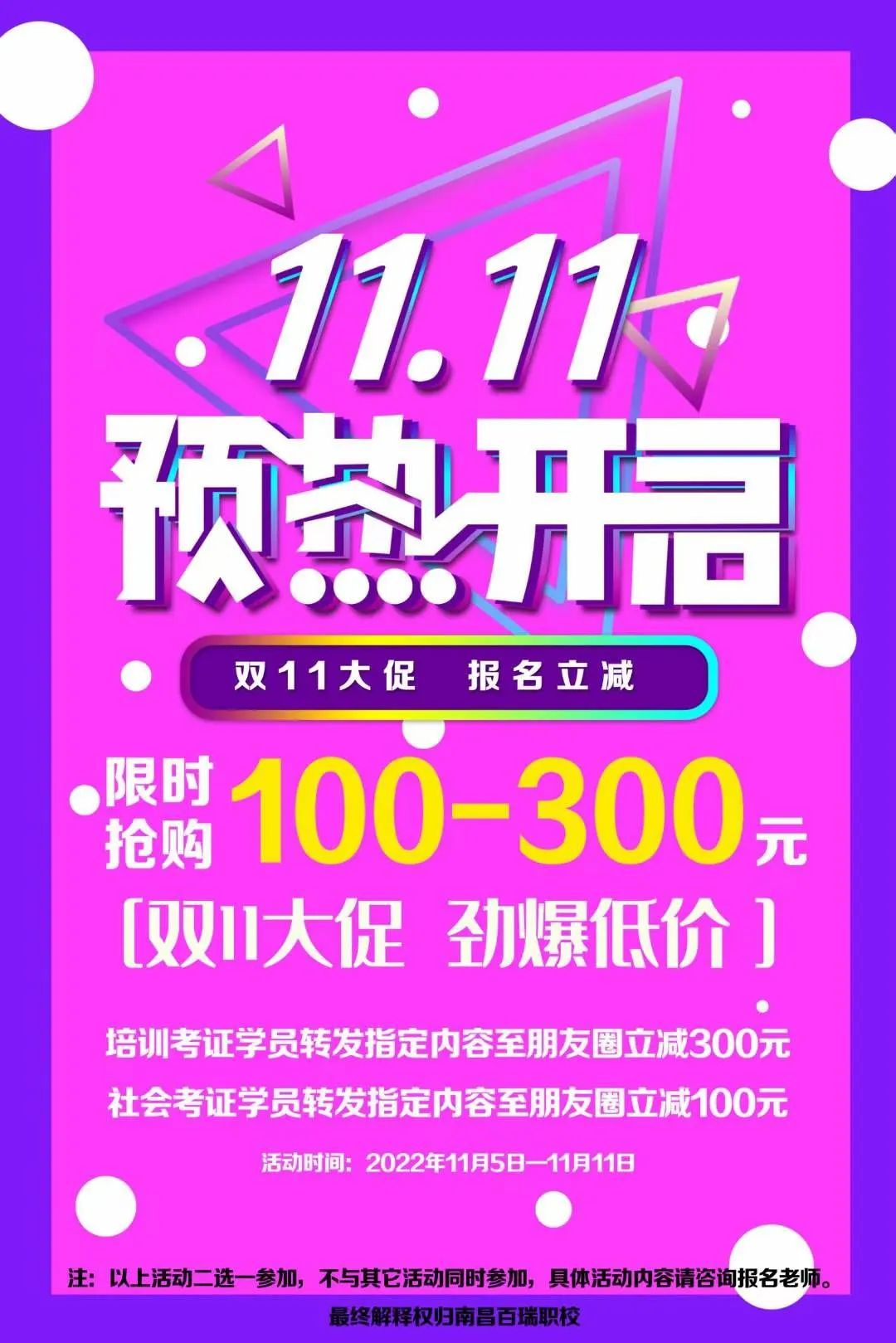 2022 百瑞职校 双十一价格来啦!